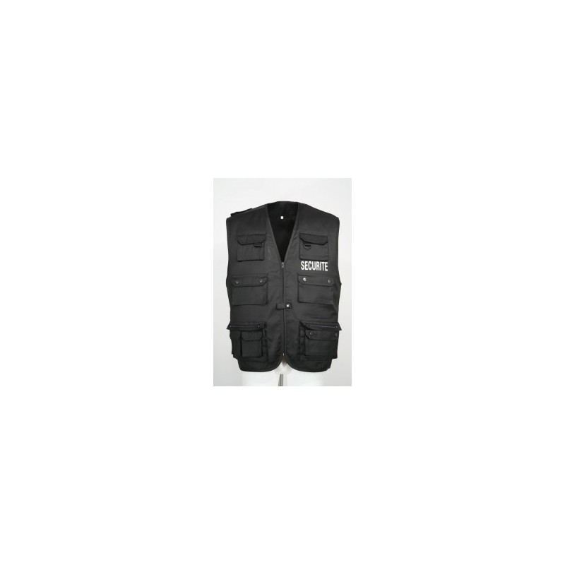 • Gilet reporter noir multi-poches, 35% coton 65% polyester.